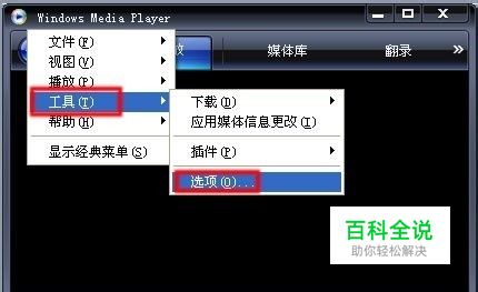 打开 Windows Media Player 11,依次点击“工具”→“选项”。