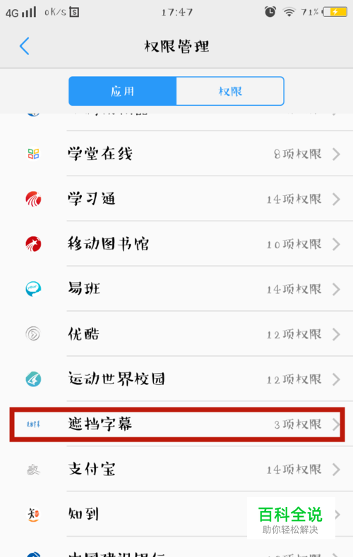 下面就是重点:首先,我们需要去手机设置里的权限管理找到遮挡字幕App,将悬浮窗打开。
