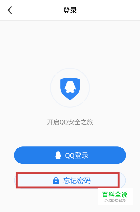 下载并打开QQ安全中心,点击登录,选择忘记密码。