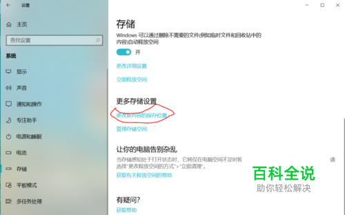 在储存里面找到 更多储存设置,选择 更改新内容的保存位置。