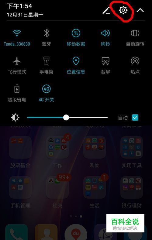 首先,选择手机设置,可以下拉手机桌面,选择齿轮按钮