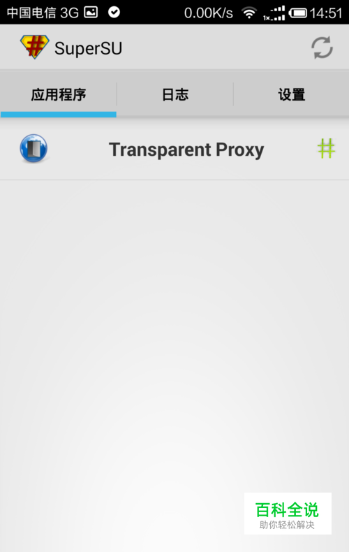 下载并在手机上安装Transparent Proxy软件,并让他获得root权限