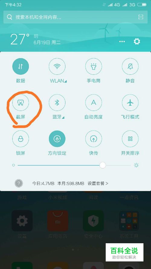 方法一:简单的方法把屏幕下滑找到“截屏”标志点一下,截屏完成。(参考下图)