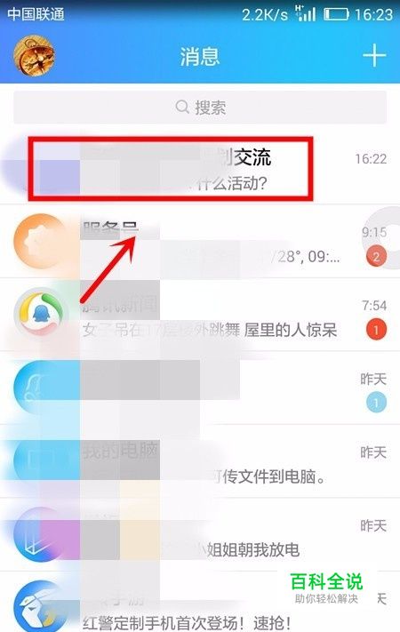 这是在登录的QQ首页面中,我们找到要进行交流的群或好友并点击进入聊天界面;