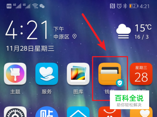 我们打开自己的华为mate20 Pro手机后,在手机中找到自带的钱包应用进入。