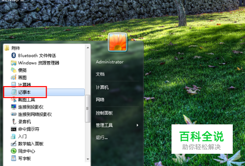 在打开的所有程序中找到“附件”,然后在附近里面找到“记事本”
