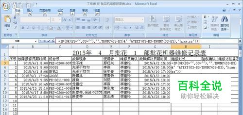 计算需求: 为了更好的掌握工厂机器维护人员对机器的维修情况,需记录好机器故障发生时间以及故障解决时间,并且利用公式函数计算出期间使用的时间是多少。