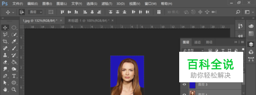 把拍好的照片在PS里打开,进行尺寸裁剪。把人物单独抠出来,并填充蓝色背景。边缘处可用“橡皮工具”进行擦除。具体步骤看上一经验链接——如何用ps制作证件照。