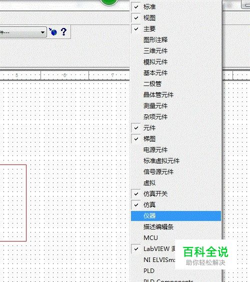 万用表是我们电路测试仿真分析中最常用的工具了,很多刚使用multisim的朋友们可能不熟悉所以也介绍一下;万用表在哪?首先要找到仪器工具栏,有时候仪器工具栏没有显示出来,那么在菜单栏或者其他工具栏的空白地方右键会弹出工具栏显示面板,这里可以显示关闭所有的工具栏,选项前面标记对号的都是现在已经显示出来的;