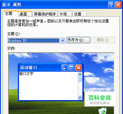 这样会弹出一个窗口,在窗口上方有主题.桌面.屏幕保护程序.外观和设置,现在我们是停留在主题页面,我们要点击桌面这个页面,
