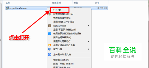 下载的文件如果是压缩包,就先解压。选择解压好的文件,单击右键,在下拉列表中点击打开。操作如截图所示