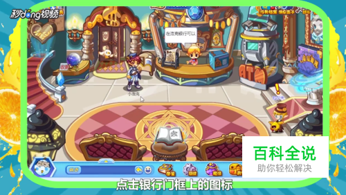 点击银行门框上的图标,旋转一圈后,会从楼梯上掉落下来一个光灵石。