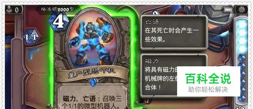 这里首先要用到量产型恐吓机手牌,这个手牌具有磁力和亡语效果,其中亡语效果,可以在其消亡时召唤出三个1攻1血的微型机器人。