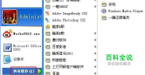 首先在电脑桌面点击(开始)键,再点击(所有程序)。