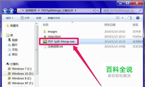 分割合并工具很多,这里以PDF Split-Merge软件为例,先从网上下载,然后解压释放出来,启动“PDF Split-Merge.exe”程序。