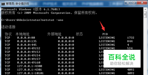 进入命令行界面输入【netstat -ano】命令,查看当前端口使用情况,观察软件端口的PID。