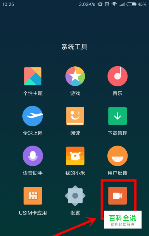 先找到桌面上的“屏幕录制”图标,这个自带的屏幕录制的软件只有MIUI9才有,请确保手机升级到了MIUI9,图标入下图所示: