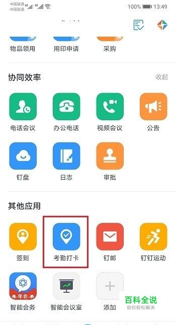 第一步在我们的手机上打开钉钉,点击工作,选择考勤打卡,如下图所示: