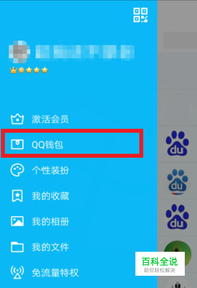 进入qq始页呈出分组界面时,指头向右滑翻出这一栏字样,而后轻触‘qq钱包’这行字钮。