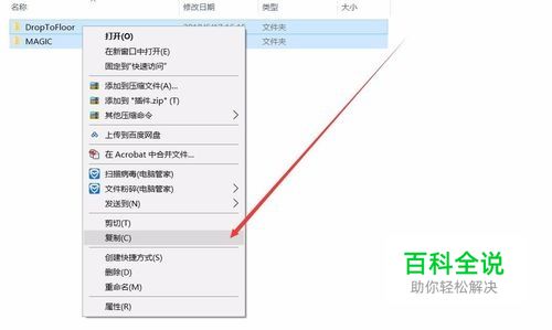 Ctrl+A全选,Ctrl+C复制或者选中文件后右键选择复制;