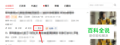 在文章下方找到 更多并点击,如文章启用双标题功能,那么在主标题下方找。
