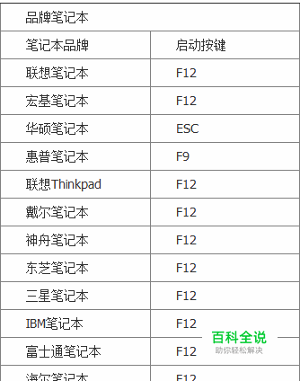 联想、惠普、宏基、戴尔、神舟、华硕、方正、清华同方、海尔、明基(进入BIOS)如下热键)