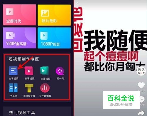 短视频专区的功能是用来制作抖音热门的,右边这种文字视频你一定在抖音见过,拿电脑端的剪辑软件来做的话,要耗费很多的时间,但是用美册做的话,几分钟就可以搞定,可以很大的提升效率。 这种文字视频素材很好找,把优质的内容做成这种形式很容易收获点赞,软件操作大同小异,我用文字视频来演示一下。