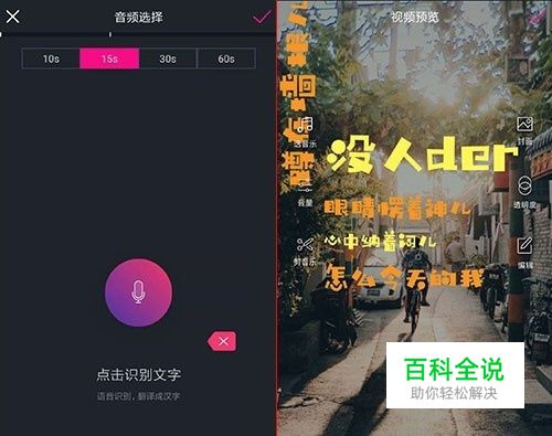 文字视频制作页面,上方的15s和60s制作入口,专门为抖音用户定制,选好时长后可以点击中间圆圈录制,也可以点击下方导入音频或者视频,接下来点击右上角一键生成文字视频。 效果是自动生成的,文字是智能识别的,你只需要对背景图,背景音乐,文字属性等进行个性化编辑,编辑完成右上角一键合成就制作好了。