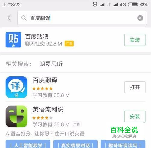 3.单击“百度翻译”进入程序,单击“照相机”的图标。