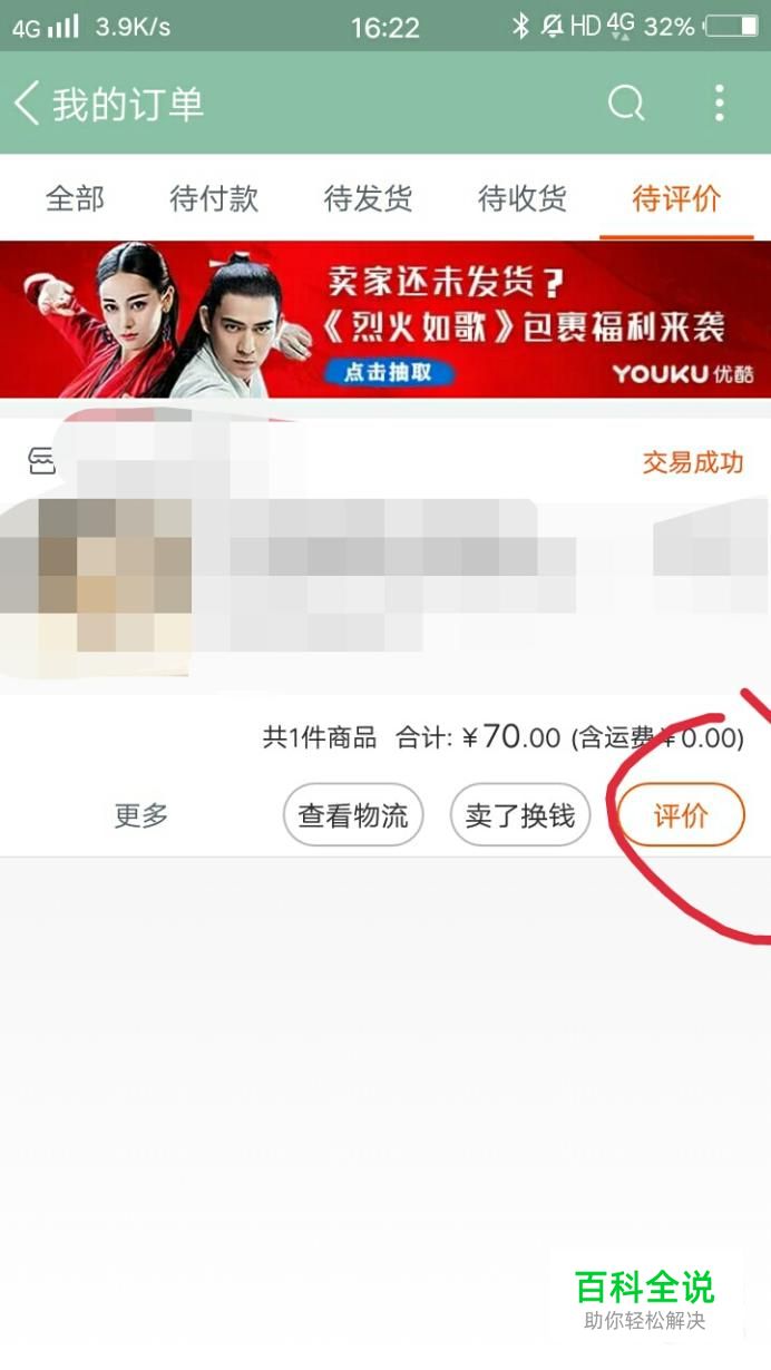 首先打开淘宝,点击需要评价的东西,然后点击评价。