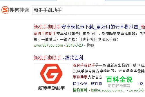 进入搜狗搜索引擎,输入“新浪手游助手"字样。这时候,搜狗搜索就出现新浪手游助手的链接。点击新浪手游助手安卓下载这个链接。