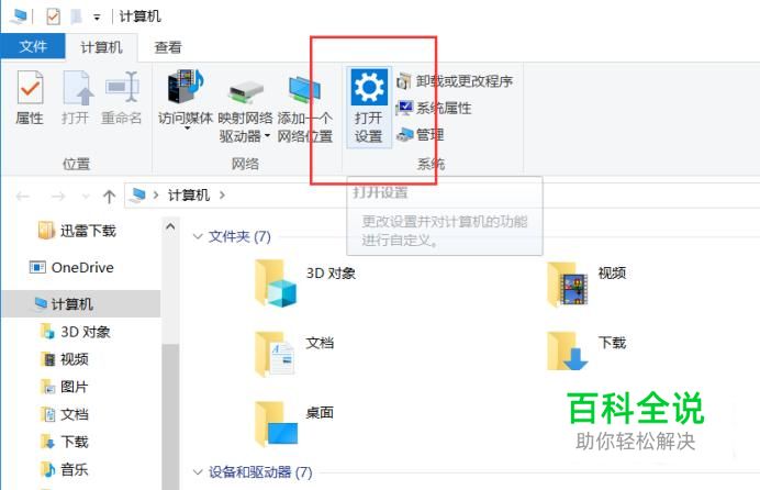 首先,打开Windows系统中的计算机窗口,点击页面中的“设置”菜单,打开Windows设置页面。