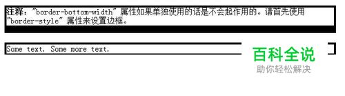 <html> <head> <style type="text/css"> p.one { border-style: solid; border-bottom-width: 15px } p.two { border-style: solid; border-bottom-width: thin } </style> </head> <body> <p class="one"><b>注释:</b>"border-bottom-width" 属性如果单独使用的话是不会起作用的。请首先使用 "border-style" 属性来设置边框。</p> <p class="two">Some text. Some more text.</p> </body> </html>