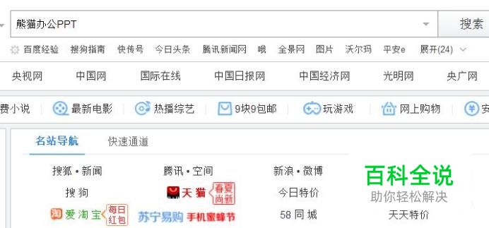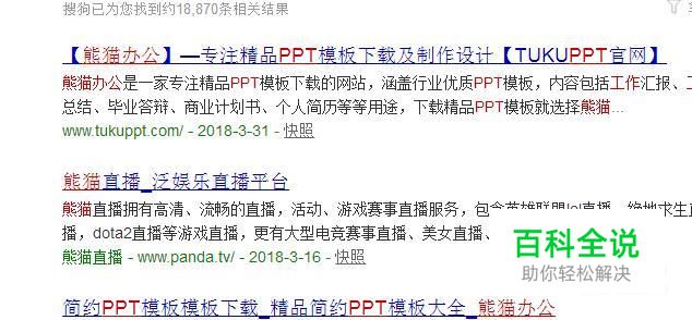 首先在搜狗浏览器中输入熊猫办公ppt并点击搜索,如下图所示。