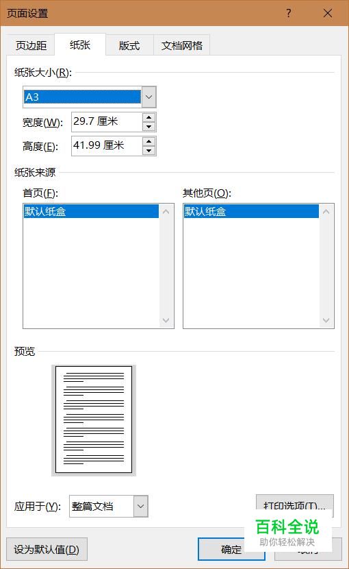 word页面设置里没有A3纸格式怎么办