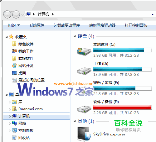 OK,实现这个目的,我们需要用到一个名为 SkyDrive Explorer 的软件,SkyDrive Explorer 是一款免费的软件(支持Win7、Vista和XP等主流Windows系统),下载安装SkyDrive Explorer 之后便会在“计算机”里面看到它的图标,就像我们的C盘、D盘一样,多出了一个SkyDrive Explorer的图标,请看下图——