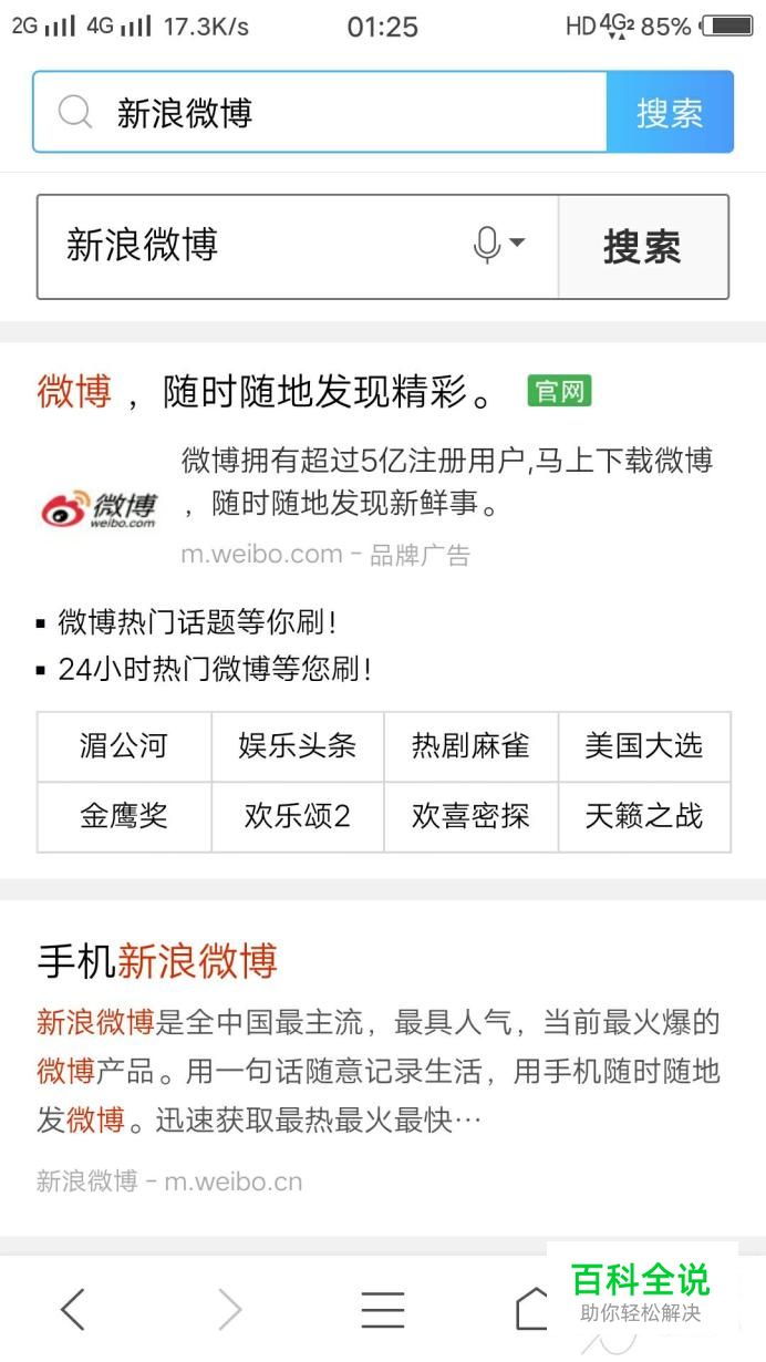 打开搜狗搜索,搜索“新浪微博”并下载,如图所示。