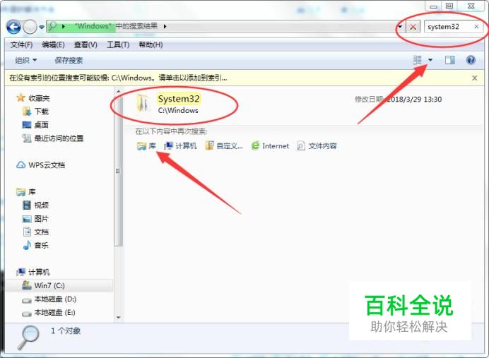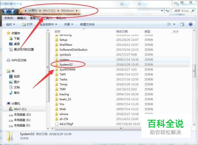 system32文件夹 然后在Windows文件夹中找到【system32】文件夹,并复制该文件夹到Windows文件夹搜索框,如下图所示: