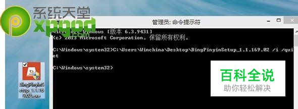 最近win8.1正式版用户普遍反应最新版win8.1必应输入法无法安装,其实这在win8.1预览版时就已经出现了;那么win8.1必应输入法无法安装怎么办呢?我们一起来看一下。 win8.1和必应输入法的忠实用户肯定都碰到过这么一个问题:win8.1下无法安装必应输入法的最新版。微软给出的提示是,“系统自带输入法已是最新版本的微软拼音输入法,无须安装微软必应输入法。请点击‘确定’退出安装。” 虽然现实很尴尬,但聪明的win8.1总能找到折中的解决办法:即先在win8.1中安装旧版必应输入法(win8.1中只是限制了新版Bing输入法的安装),而后再升级到最新版输入法。 现在,系统天堂小编再为大家带来一个彻底、有效、简单的办法,来解决win8.1下无法安装最新版必应输入法的问题。 方法是:在命令行里输入“文件路径\必应输入法安装包名称 /i /quiet”,操作流程如下: 1、Win+X 调出来“命令提示符” 2、在命令提示符中输入,C:\Users\Winchina\Desktop\BingPinyinSetup_1.1.169.02 /i /quiet,回车,即完成任务了。 3、win8.1中成功安装上最新版Bing输入法了 win8.1必应输入法教程相关推荐: 如何获取win8/win8.1最高权限 win8.1桌面图标无法拖动怎么办 win8.1系统电脑蓝屏怎么办