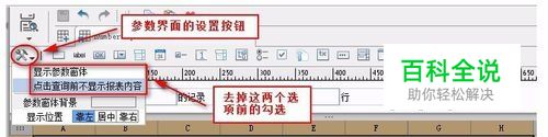 切换至参数界面,在左上角的设置按钮中,去掉显示参数窗体和点击查询前不显示报表内容两个选项前的勾,如下图