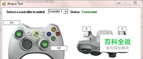 首先,下载完解压后(全部都解压出来到一个目录下),把手柄接上电脑,然后打开叫做XInputTest.exe的文件,你会看到以下界面,