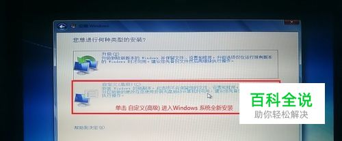四.选择自定义(高级)单击进入Windows系统全新安装。