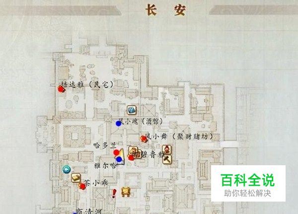 侠义榜 缺钱花 第一场:恶棍(HP:140,特殊技:张飞擂鼓——物理伤害)*2 第二场:飞贼(HP:140,特殊技:炎雨——火属性伤害)*3 【速度很快,攻击力也很高,在这种系统下想找破绽无伤击杀难度略高,记得补血和气,用技能磨死比较好】 第三场:红粉飞贼(HP:140,特殊技:沉鱼落雁——持续回血技能)*3 【相对而言还是第二场比较难打,第三场的对阵角色无论是加血技能还是攻击技能都可以被攻击打断,需要施法时间较长】 游戏地图&支线剧情 离开家之后可触发全部支线任务: 1.帮助【哈多兰】向【穆尔哈】索取胭脂配方; 2.帮助赌场里的【风小舞】找到酒馆里的【风小魂】; 3.帮助【茶小乖】向【商清和】购买书籍; 4.接下【培达雅】购买西域点心“巨胜奴”(暂时无法完成) 5.接下【阿碧鲁雅】购买“胡麻”的任务(暂时无法完成) 城中有些宝箱,有掌心雷一类收藏价值不高的物品,就不一一列举了。具有价值的宝箱和NPC才在地图上标记出来。 1234