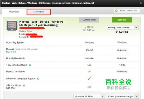 弹出如下图所示窗口,显示当前主机的信息。点击左上方”Customize”。