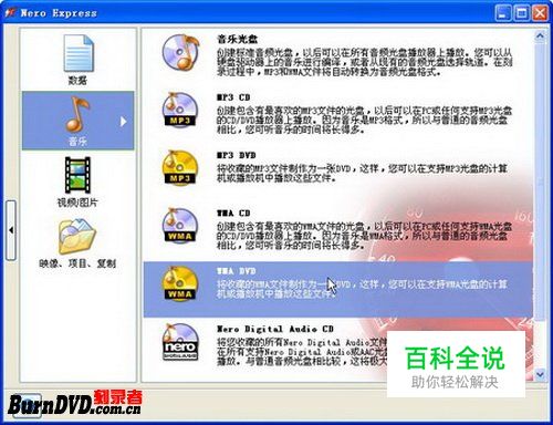使用Nero Express 7刻录WMA DVD音乐光盘