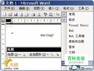 准备工作,将Word的绘图工具栏调出来。