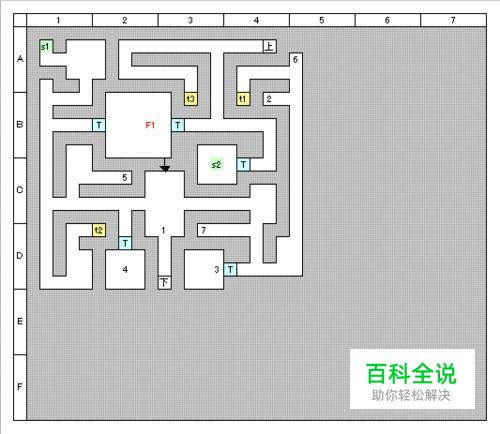 1F 地图说明 F1:FOE BOSS S:采集点 t:宝箱 T:门,红色的需要钥匙 数字:剧情 磁:粉色带表树海磁轴、土黄代表磁轴拄