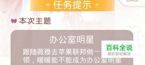 办公室明星,我们先来看一看介绍,跟随薇雅去苹果联邦做一名小白领,暖暖能不能成为办公室明星呢?根据这段话我们很难判断出具体属性,只能知道一个大致方向。 不过有玩家已经统计出这一关的具体属性:简约,优雅,成熟,性感,清凉。