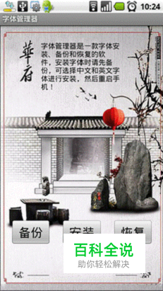 然后打开字体管理器,为了保险起见,我们要先备份手机里的原有字体,点击“备份”,显示下图:点击“是”