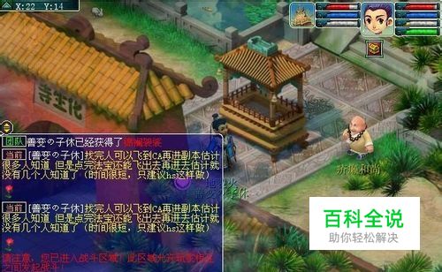 清除迷雾: 进入场地后四周刷出4只偷袭的迷雾,ALT+A进入战斗,战斗怪非常恶心,后排怪物全部开场横扫宝宝(注意我没见过扫人,带感知),前排怪全部剑荡四方。宠物没有很高的抗性完全生存不了,怪不得一进去旁边就刷个超级巫医,我懂的这里是四场。另外前面几个怪不要设定后排小怪全部横扫宝宝(还带感知),攻宠直接飞,法宠25物抗都抗不住你旁边虽然放了个超级巫医,不过寿命。 杀完怪之后,有点像乌鸡国,要等这群护卫慢悠悠爬上金山寺,到了金山守门僧和你拉下家常,完事和玄奘拉家常准备起身一起去道场,然后发现山下有一团妖气。